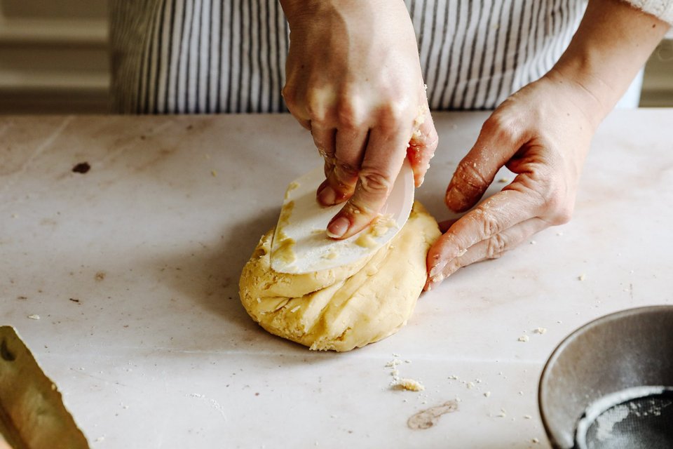 Wichtig: Der Teig darf nur kurz geknetet werden. Den fertigen Teig am besten einen Tag vorher herstellen und im Kühlschrank aufbewahren. Eine Stunde vor dem Ausrollen aus dem Kühlschrank nehmen.