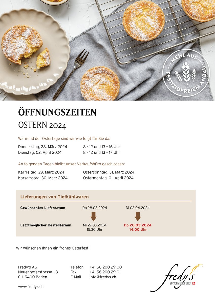 Informieren Sie sich bereits jetzt über unsere Bestell- und Öffnungszeiten über Ostern 2024.